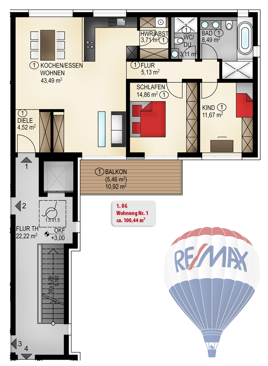 Wohnung Nr. 1 – 1. Obergeschoss – ca. 100,44 m²