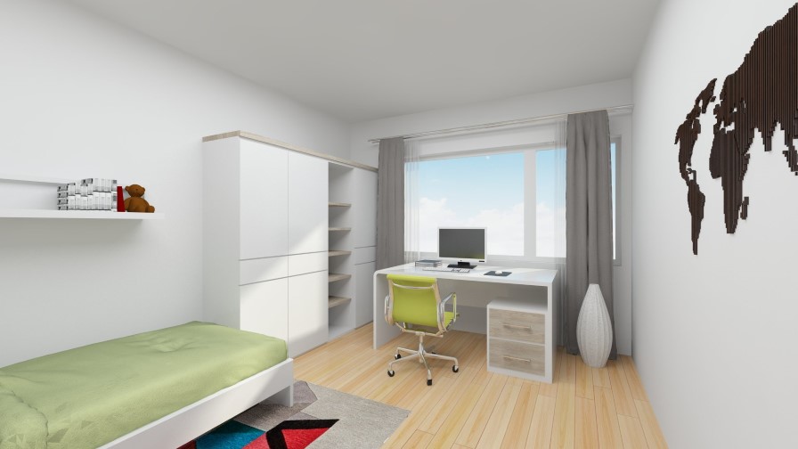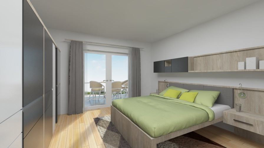 Der Fahrstuhl bringt Sie von Ihrem Stellplatz im Erdgeschoss direkt vor Ihre Wohnungseingangstür im 1. Obergeschoss. Die drei Zimmer haben eine schöne Aufteilung. Neben dem großen Wohn-/Esszimmer mit offener Küche haben Sie in dieser Wohnung zwei weitere Zimmer, ein Schlafzimmer und ein Kinderzimmer. Das Tageslichtbad hat eine Badewanne/ eine Dusche, Waschbecken und WC.