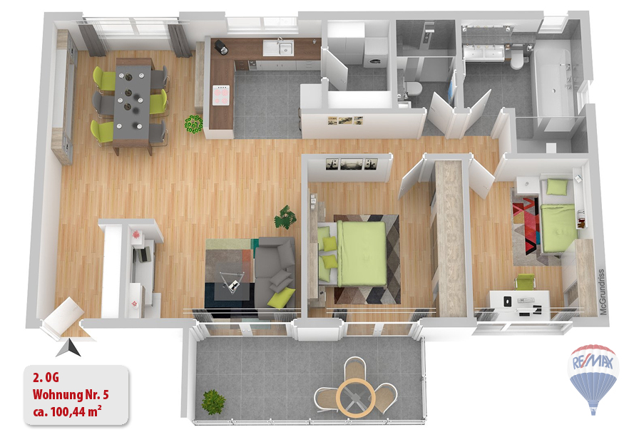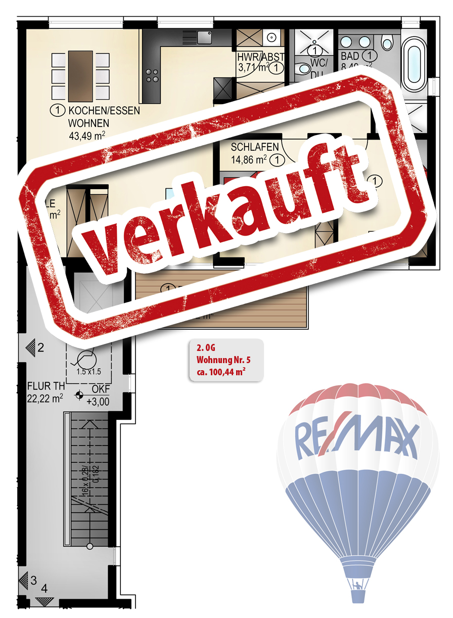 Wohnung Nr. 5 – 2. Obergeschoss – ca. 100,44 m²