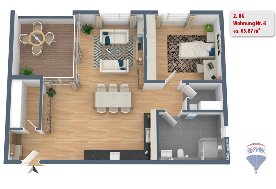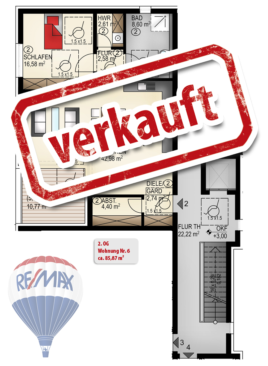 Wohnung Nr. 6 – 2. Obergeschoss – ca. 85,87 m²